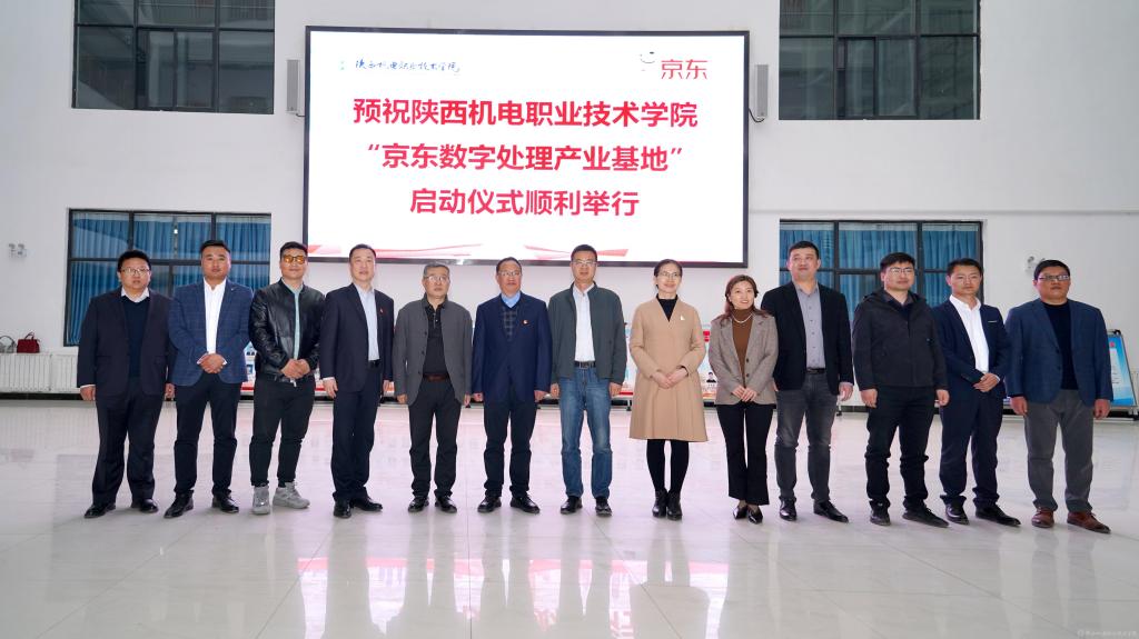 3月14日下午,陕西机电职业技术学院“京东数字处理产业基地”启动仪式在陕西机电职业技术学院蟠龙校区成功举行。参加本次启动仪式的政府代表有宝鸡市数字经济局副局长任海成、宝鸡市经济合作局二级巡视员索双海;企业代表有京东校园馆运营中心总经理万昌昌、京东校企合作大区经理郭洲丞、京东区域运营公司代表周通。学校党委副书记、院长向纪明、党委副书记张琴、党委委员、副院长张克、教务处、招生就业处、校企合作处及电子与信息学院等部门主要负责人参加了本次启动仪式。仪式由电子与信息学院院长姜有奇主持。