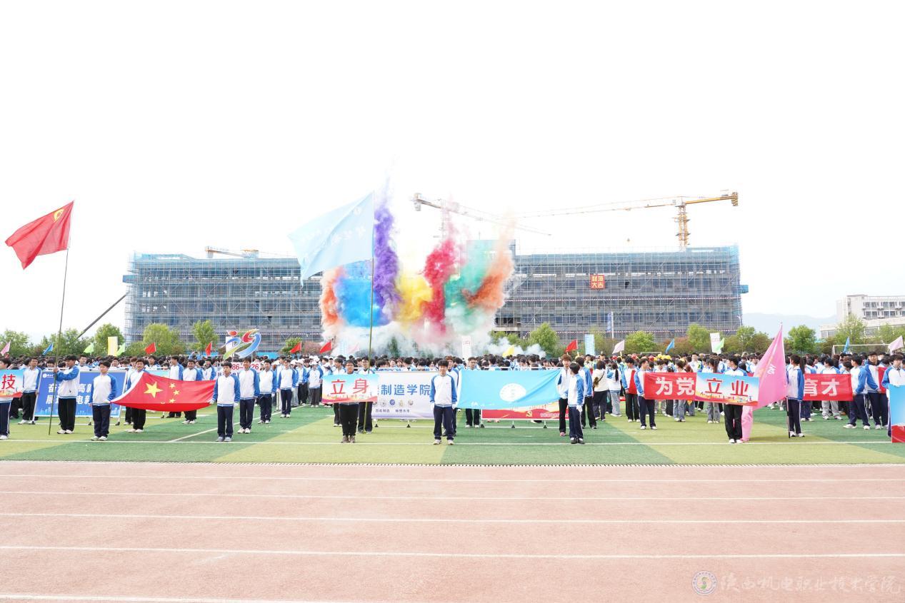 “陕西机电职业技术学院第29届田径运动会开幕!”一声令下,礼炮轰鸣,彩烟腾空,运动会正式拉开帷幕。